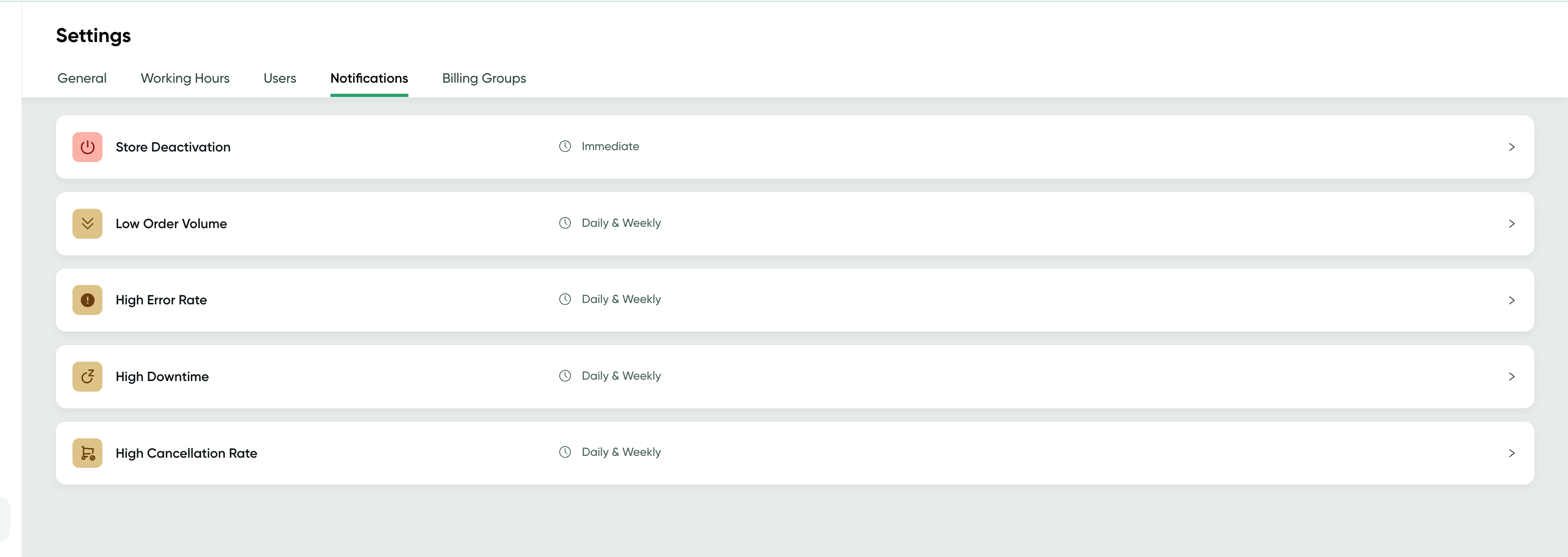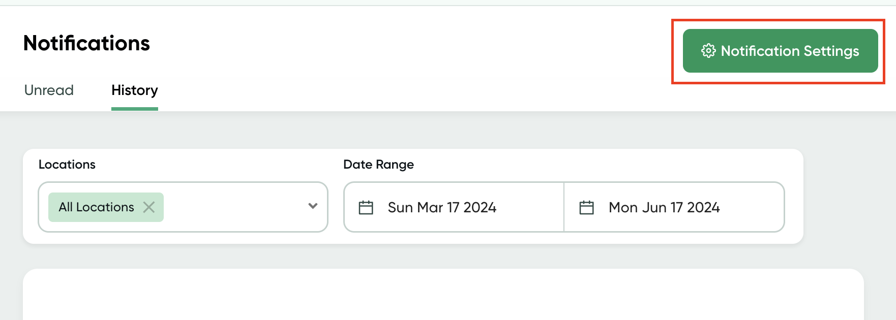 History : all-time record of your store notifications with the ability to filter by location and date range